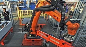 码垛机器人码垛机器人是一种对纸箱、袋装、罐装、啤酒箱、瓶装等各种形状成品进行包装、搬运及整齐有序摆放的工业机器人,用途十分广泛,适用于食品、化肥、五金、饮料、电子、...