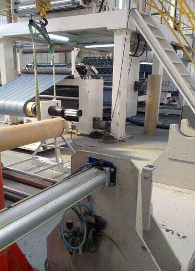 整个系统主要有三部分构成,分别为PLC部分,变频器部分,上位机(工业平板电脑)部分。PLC部分主要控制成型辊的动作,循环水泵的启动停止及成型机的移动和限位等,变频器部分主要完成牵引传动部分。上位机负责对生产线各牵引电机的速度进行控制和协调,使隔板在合适的张力下运行。平面图片如下: